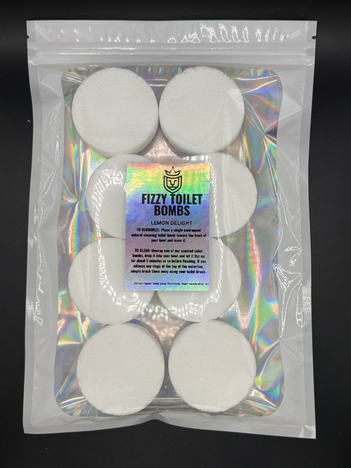 To Clean: Unwrap one of our scented toilet bombs, drop it into your bowl and let it fizz up for about 5 minutes or so before flushing. If you witness any rings at the top of the waterline, simply brush them away using your toilet brush.